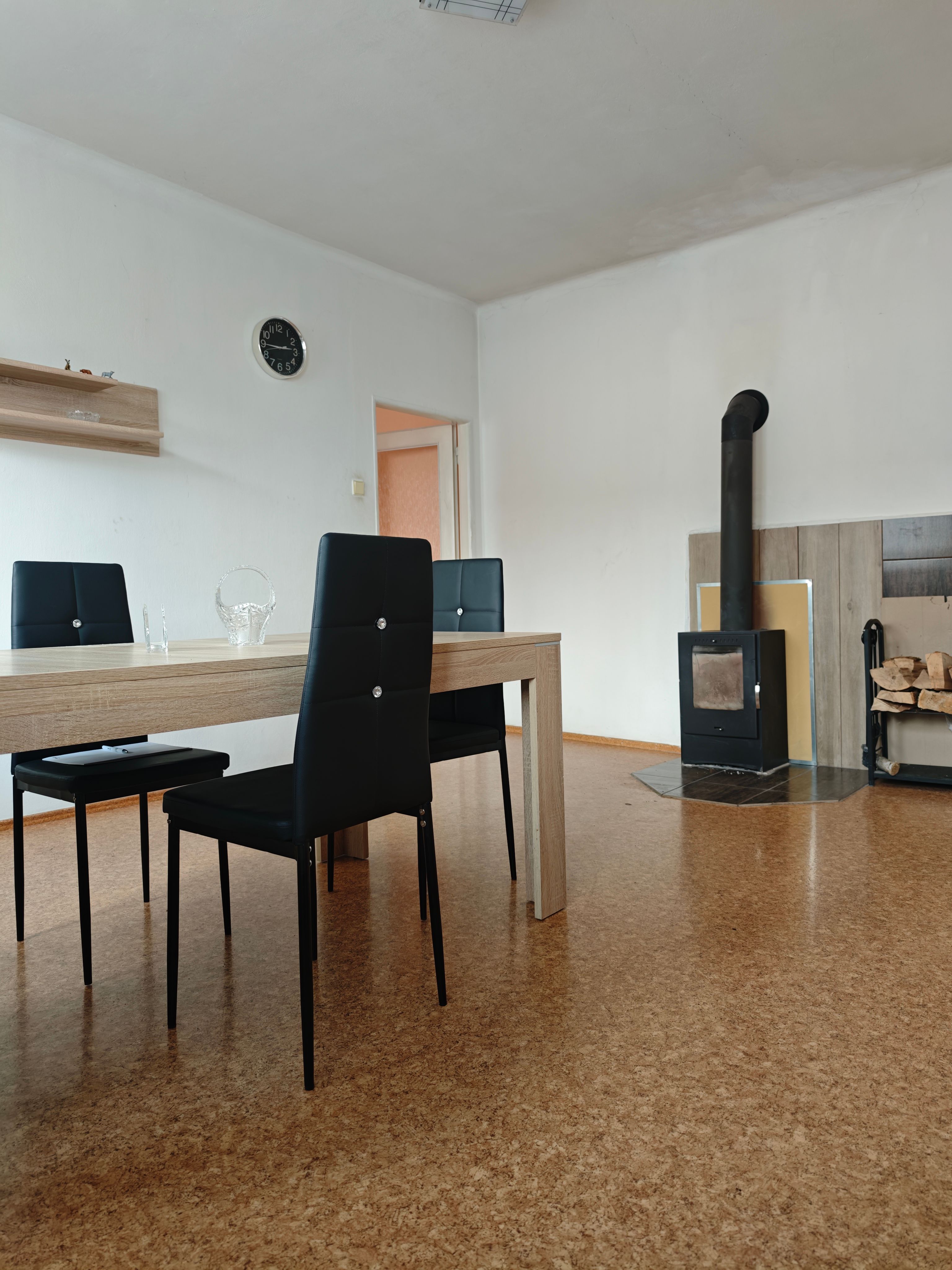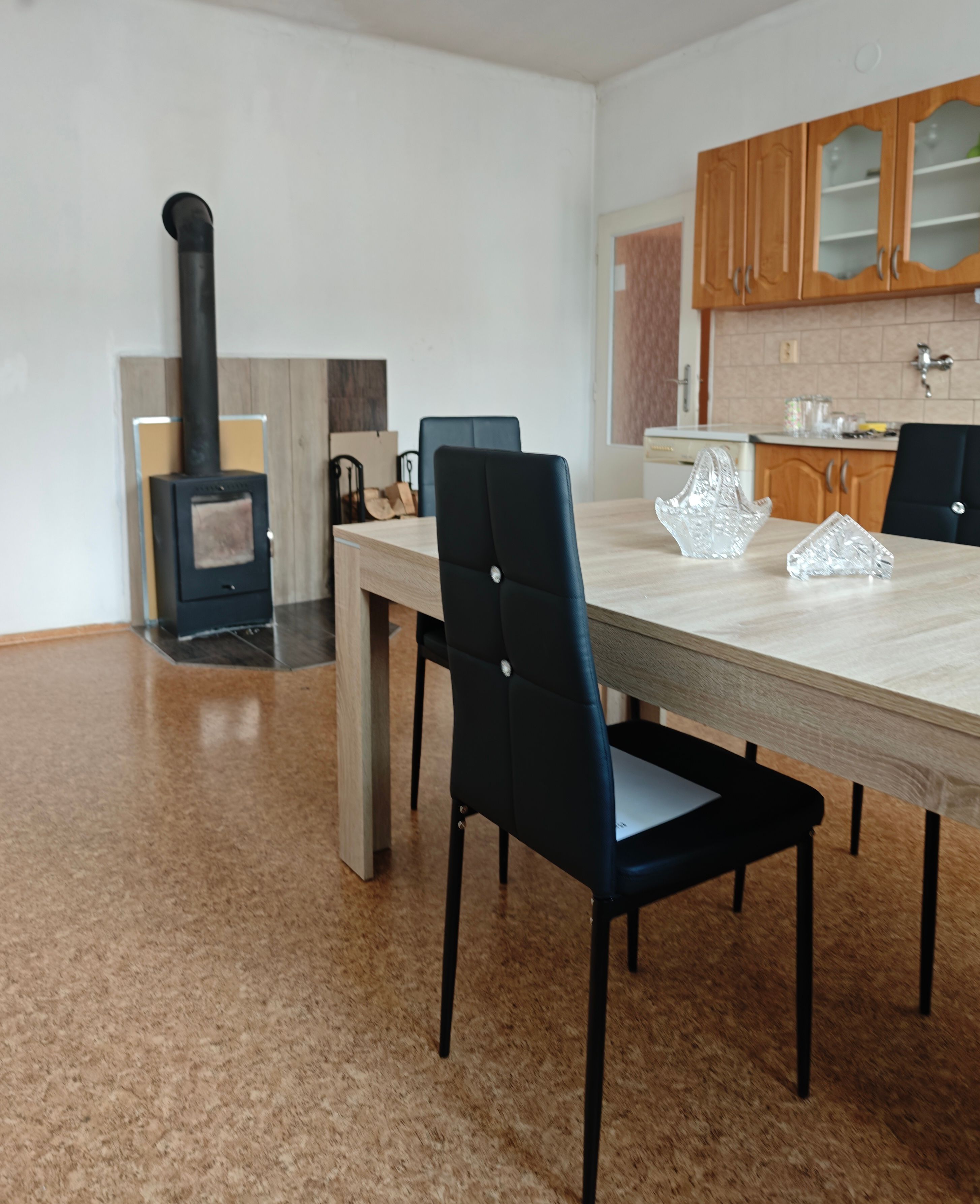 Vytápění je řešeno krbovými kamny na dřevo. Dřevo je možné zajistit velmi levně - nedaleko se nachází les, kde si lze po domluvě s hajným dřevo nařezat a naštípat za rozumný peníz. Alternativně je možné topit elektřinou (nájemník si zajistí vlastní přímotopy).